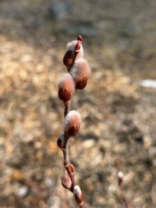 The photo above features a leaf and flower bud of the skunk cabbage taken on February 26th under 30 inches of snow. The leaf buds of the skunk cabbage emerge in the late fall. As the days get longer and warmer in the spring the flower bud begins to emerge. One of the adaptations the plant has developed is thermogenesis, the ability to produce heat. Thermogenesis is when a rapid cell respiration creates heat from the transfer of energy. Sknk cabbage can maintain 68F within the spathe. The heat the plant is producing helps to keep it from freezing in the unpredictable spring temperatures but also volatizes the fragrance of the plant.